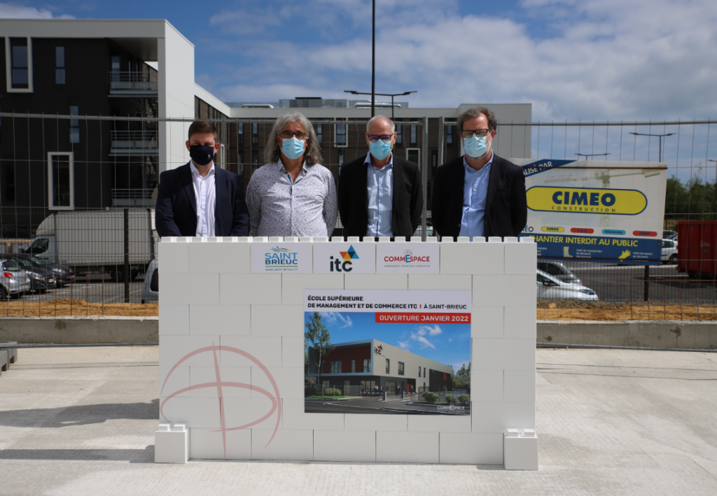 Jeudi 10 juin 2021, avait lieu la cérémonie de pose de la première pierre de l’Ecole de Management et de Commerce (ITC) à Saint-Brieuc sur notre chantier de construction.